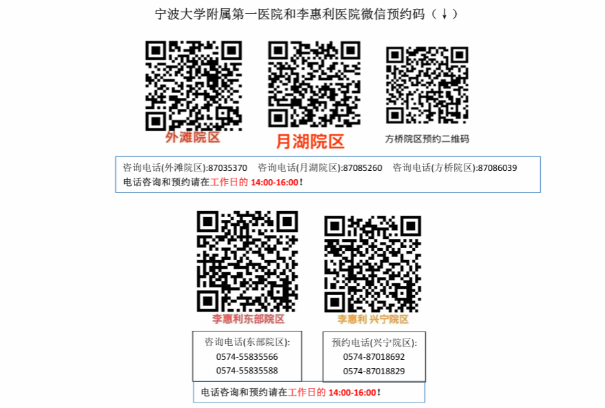 宁波市李惠利医院(兴宁院区):0574-87018692、0574-87018829
