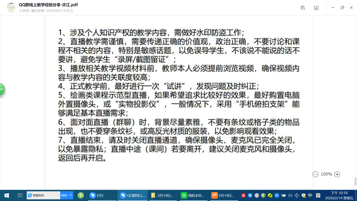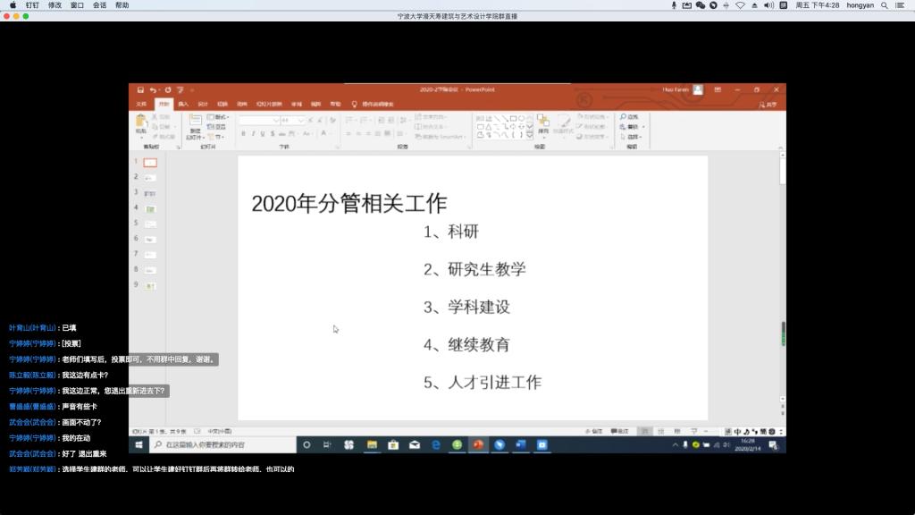 疫情防控延迟开学期间调整本科教学工作安排,为最大程度减少因疫情延迟开学带来的影响,做到“停课不停教、停课不停学”,我院召开了2020年疫情防控期间本科教学工作在线会议。会议由周艳副院长主持,全体教职工参加了钉钉群直播会议。