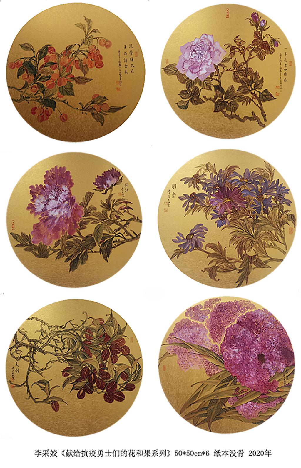 美术系教师党员李采姣教授采用鸡冠花、荔枝、樱桃、月季、菊花、牡丹6种花果,绘出8幅创新作品——《献给抗疫勇士们的花和果系列》,献给敬佑生命、甘于奉献、大爱无疆的全国抗疫勇士们。该系列作品获《人民日报》新媒体平台、《人民政协网》、《法治周刊》、《中国网》、《中外通讯社》、《世界侨报》等国内外200多家媒体转载和报道。