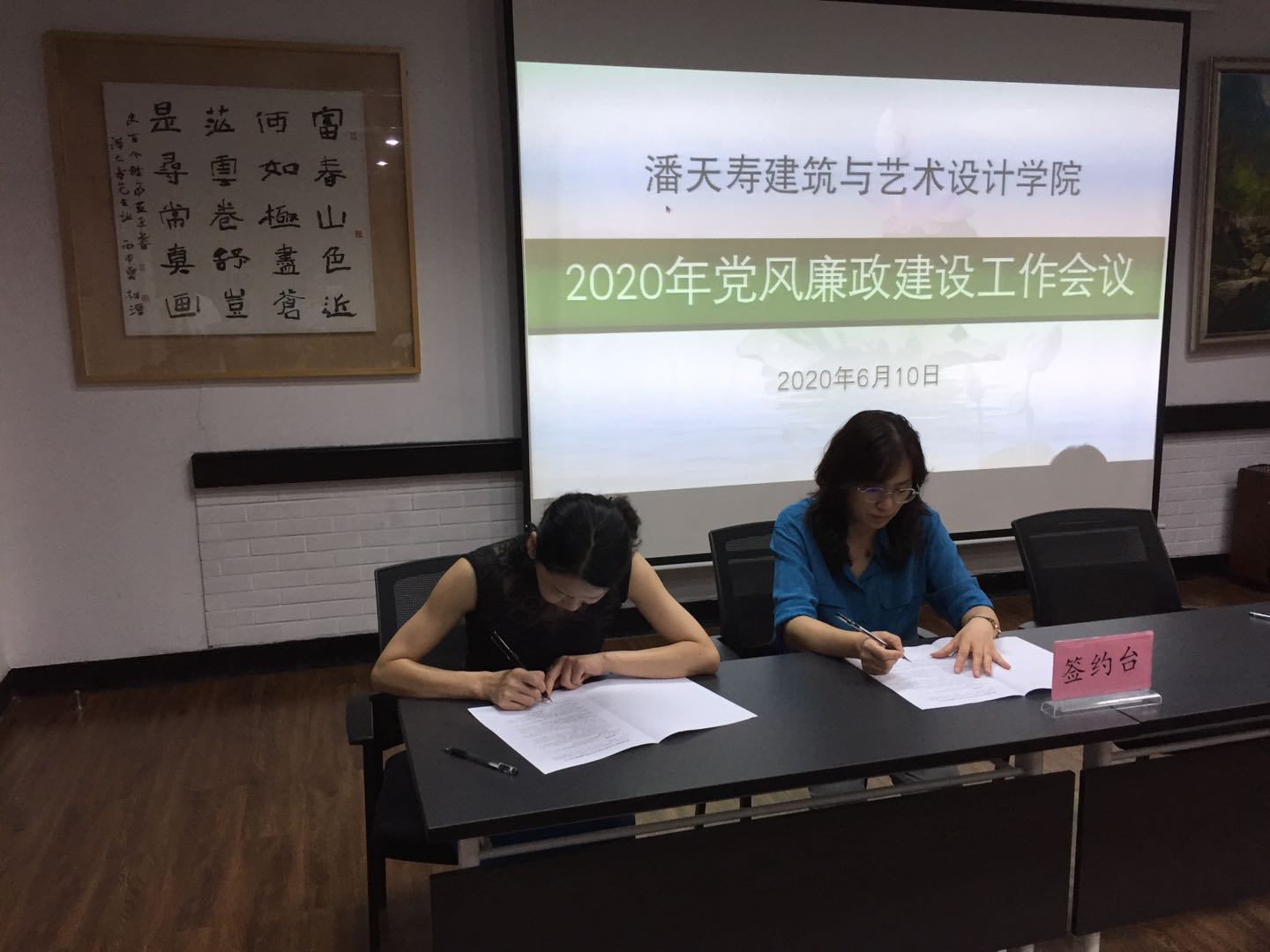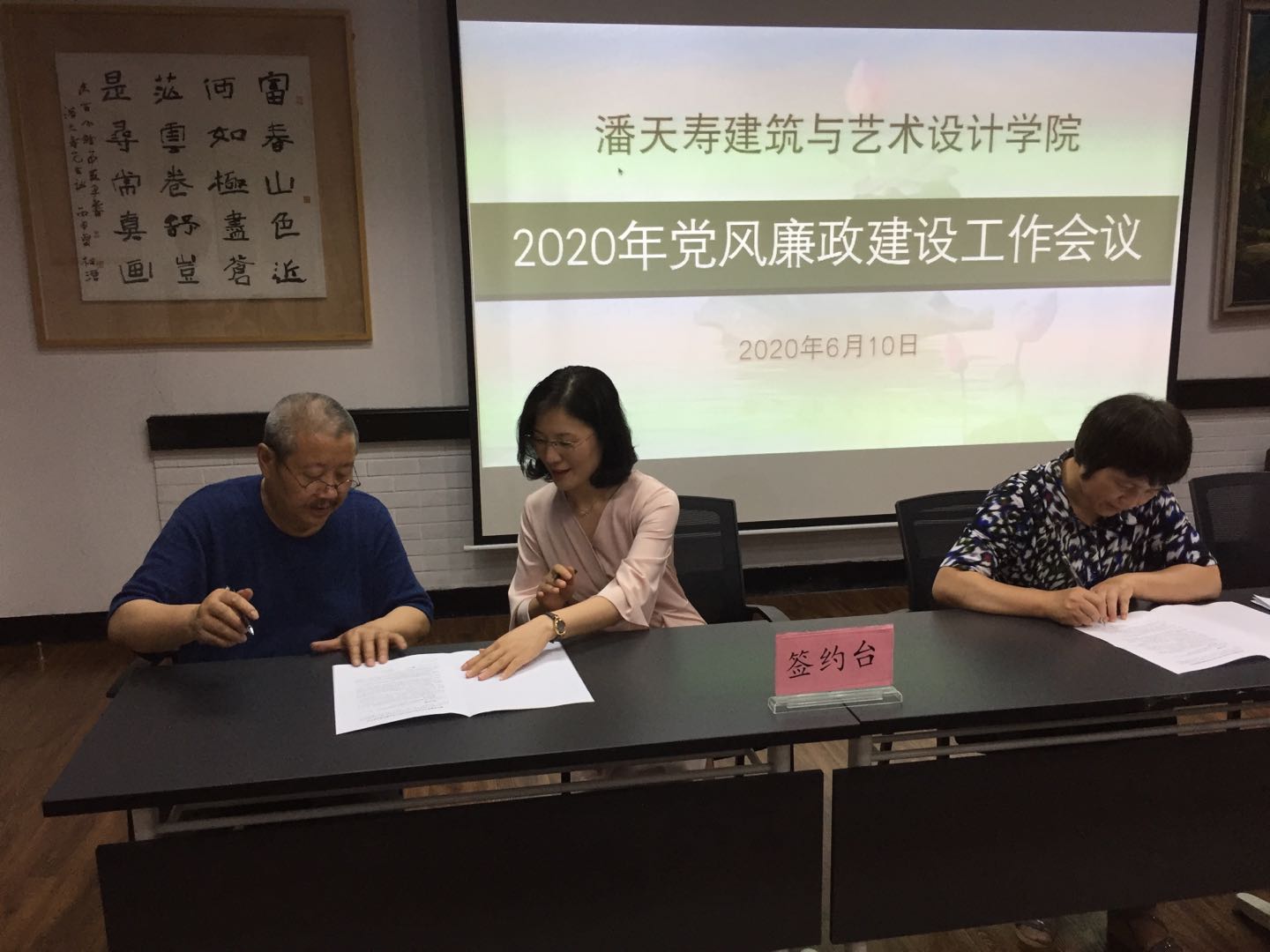 领导签署廉政承诺书,并与各系部办主任就党风廉政建设责任进行签约;特聘院长徐仲偶进行集体廉政谈话。