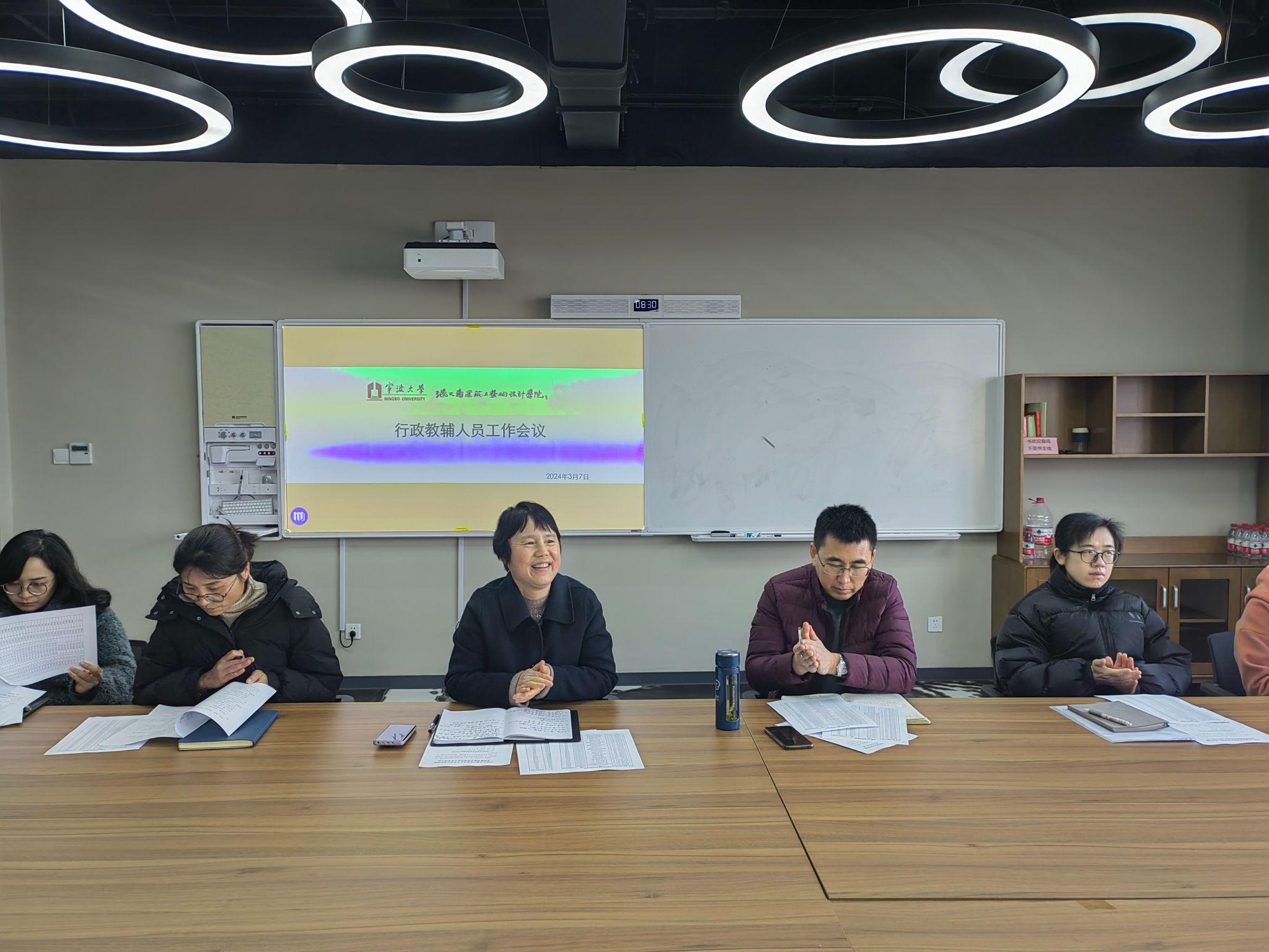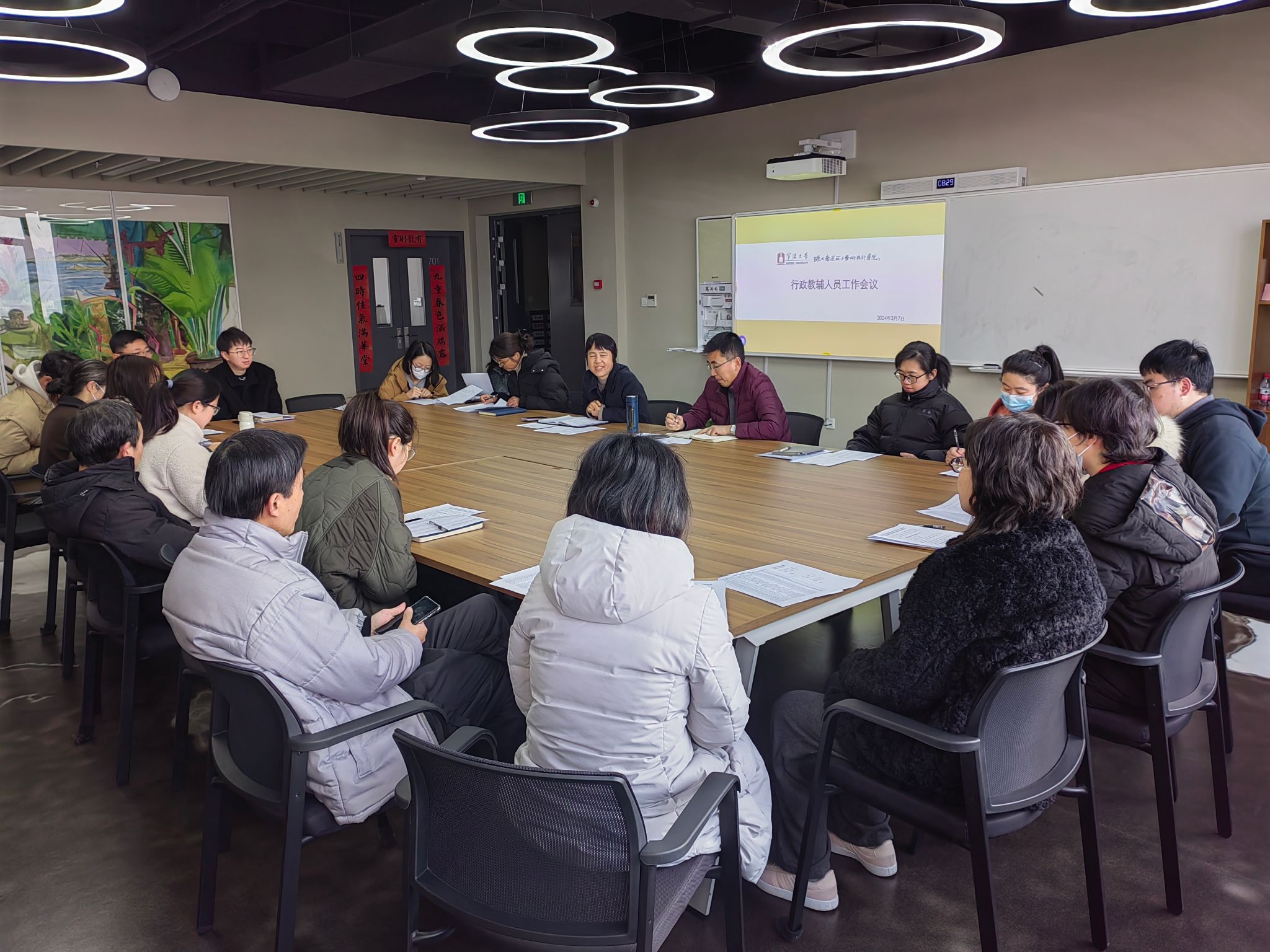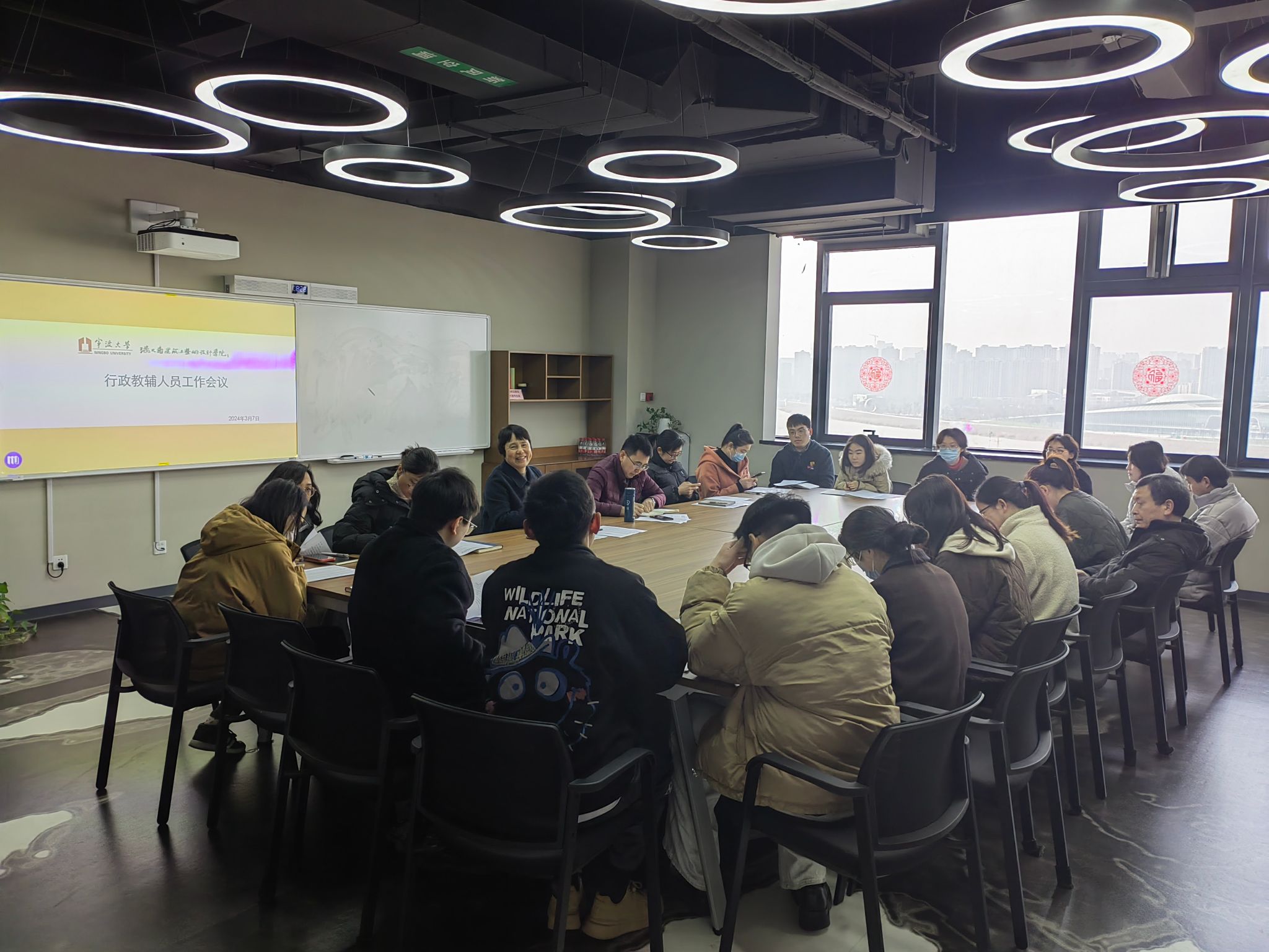 本科教育教学审核评估迎检工作、专教卫生、学风检查、新闻报道等事项进行了部署。并希望全体行政教辅人员坚定干事创业的决心、信心,增强责任感、使命感、荣誉感,树立问题导向、目标导向、效果导向,勇于担难、担重、担苦,以崭新面貌迎接好本次教育教学审核评估工作。