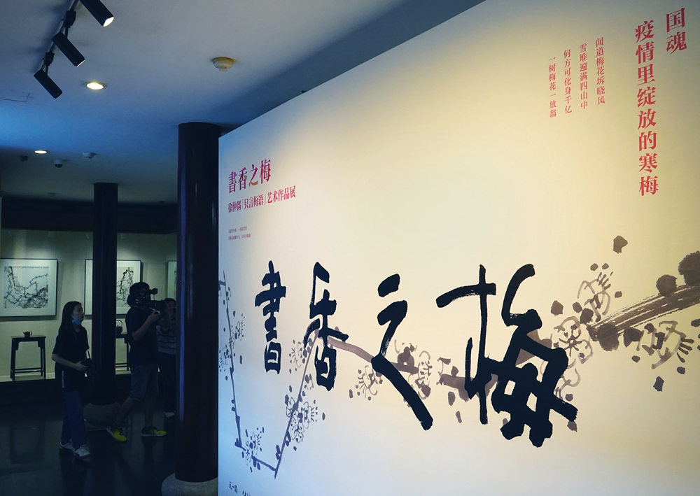 特聘院长徐仲偶教授在疫情期间特别创作的“书香之梅”系列作品50余件,以独树一帜的构图布局和耳目一新的笔痕墨韵展现了一树树具有时代审美的傲雪寒梅,呈现出一个见风骨、见境界、见情怀、见追求、见满满清气的乾坤世界。