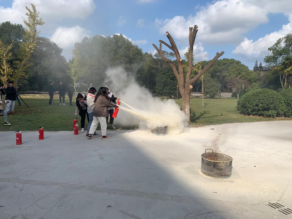 保卫处徐老师围绕“关注消防、生命至上”主题,向两院师生介绍了火灾发生条件,火灾注意事项,重点讲解了面对火灾要强化意识,提高技能,学会报警,学会扑救等灭火和逃生技巧等。讲座后,在西区邵逸夫图书馆前,保卫处老师演示了灭火器的使用方法、灭火步骤等,两院师生按照演示方法,拿起灭火器,拉开消防栓,依次开展灭火练习,成功火盆中燃烧的火焰扑灭。