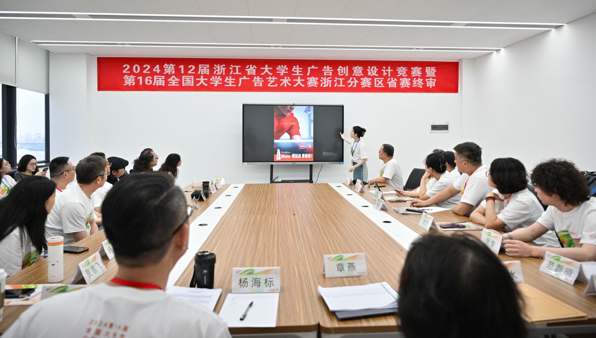 承办的2024第12届浙江省大学生广告创意设计竞赛暨第16届全国大学生广告艺术大赛浙江分赛区省赛终审活动,于本次省赛终审共分平面组、视频组、综合组和策划组4个组别展开线下评审和现场答辩,全省80多所高校近400名入围作品学生参与。