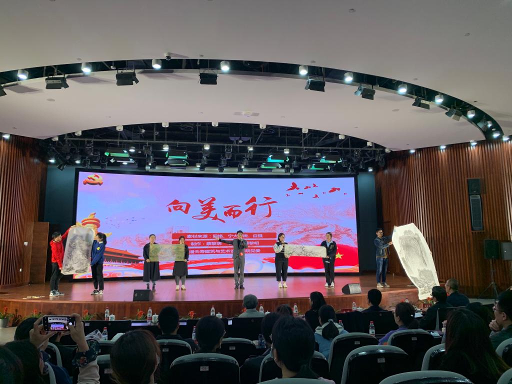 独角兽新媒体公益艺术工作室帮扶困难群众,推进乡村振兴的案例,表明向美而行的任务在于立德树人,路径在于扎根时代生活。最后,8位学生党员一同上台,向在场观众展示了利乐娱乐城网