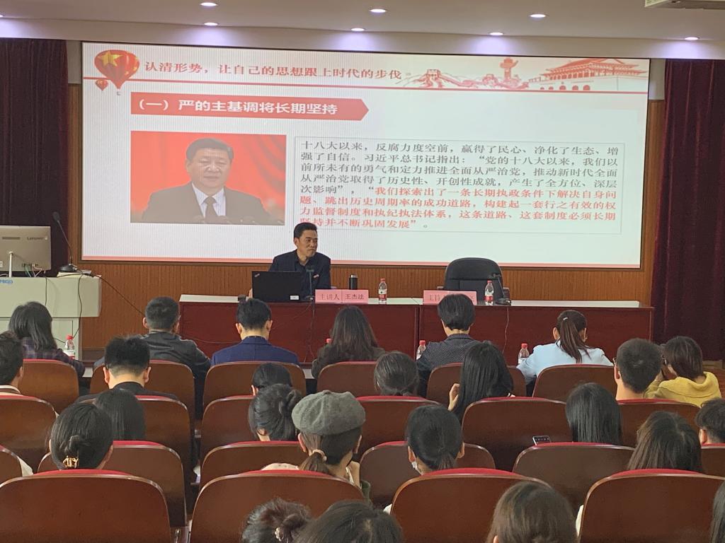 王杰法书记要求教职工认清形势,让自己的思想跟上时代的步伐;明确责任,切实强化担当作为;切实承担起管党治党责任、提高思想政治教育水平、建设团结和谐的优秀团队,守牢道德法纪底,提高德行操守,在推动事业发展中成长自己。