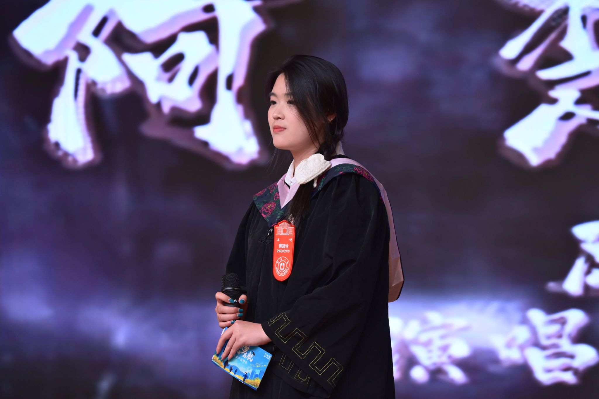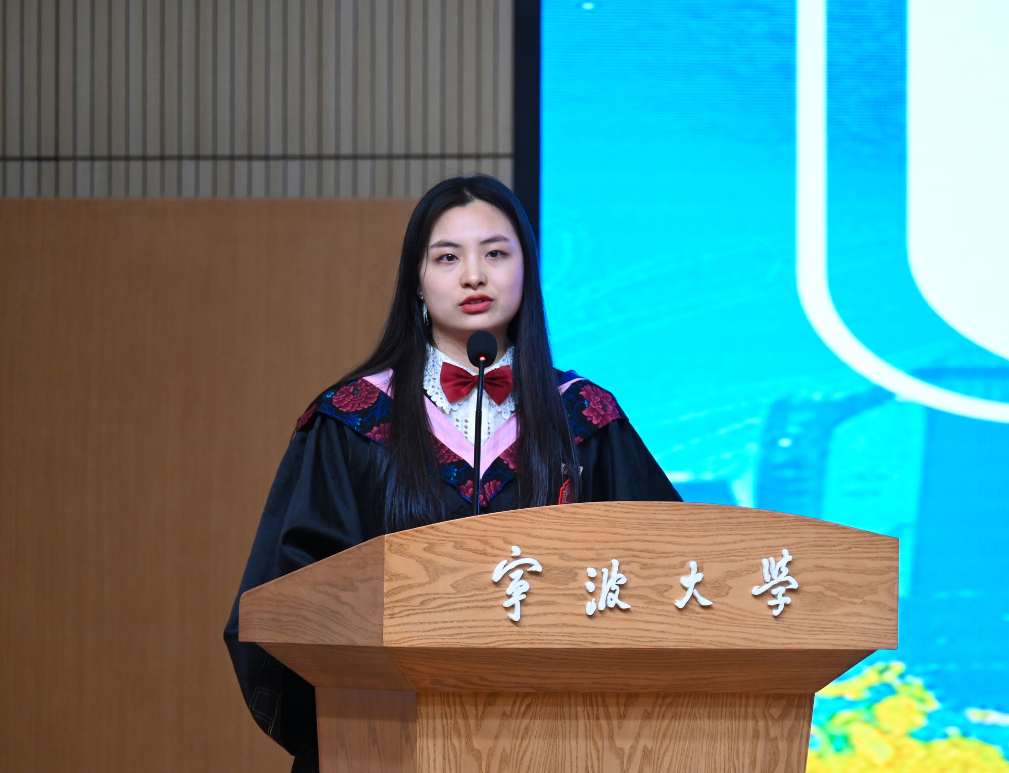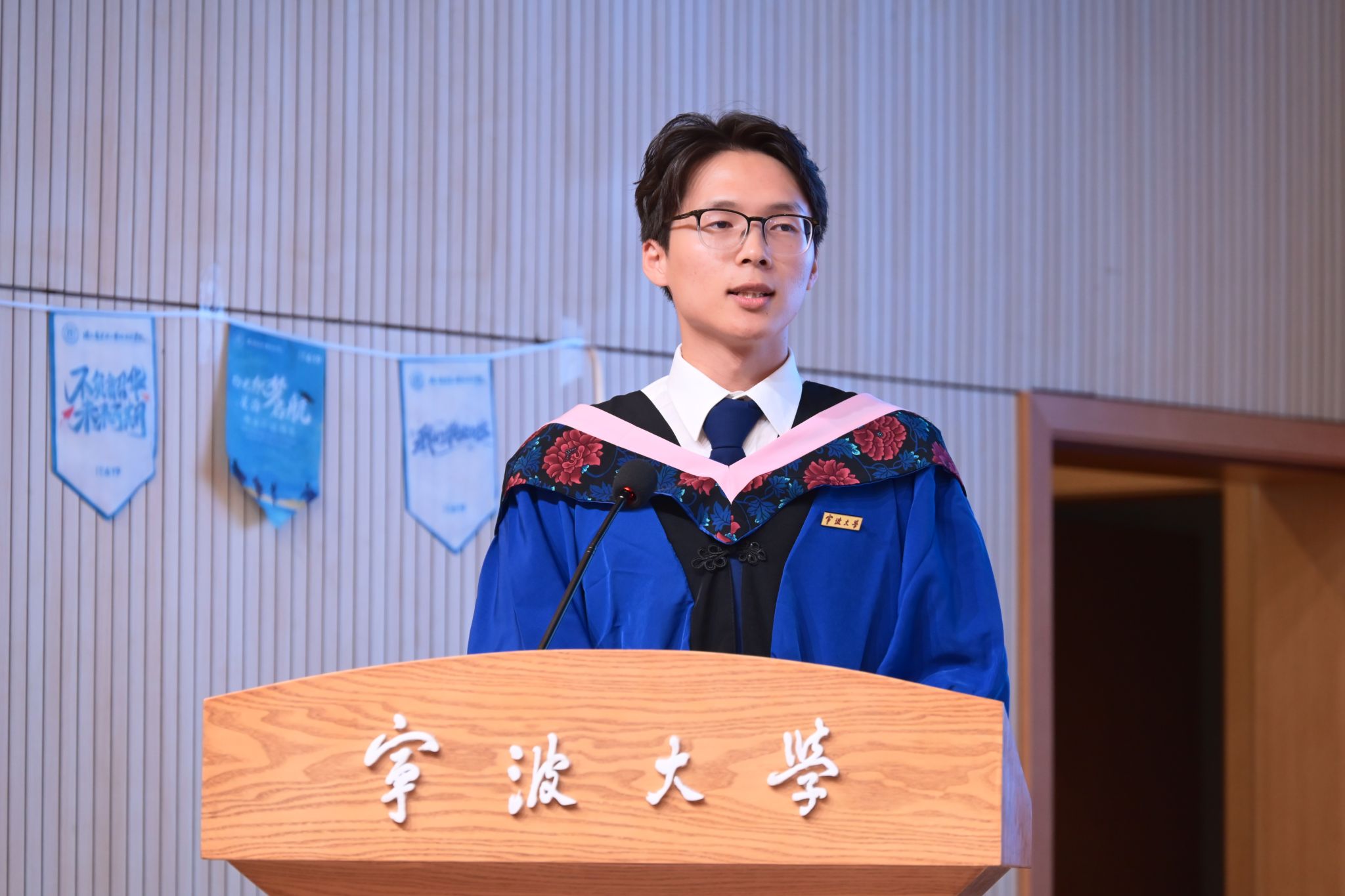 研究生毕业生孟得信在分享中细数同窗情谊与师恩难忘,他说:“我们的青春故事,就这样一点一滴,刻进了宁大的每一条小路、每一片树叶,成为这段美好时光里,我们携手同行的珍贵印记”。