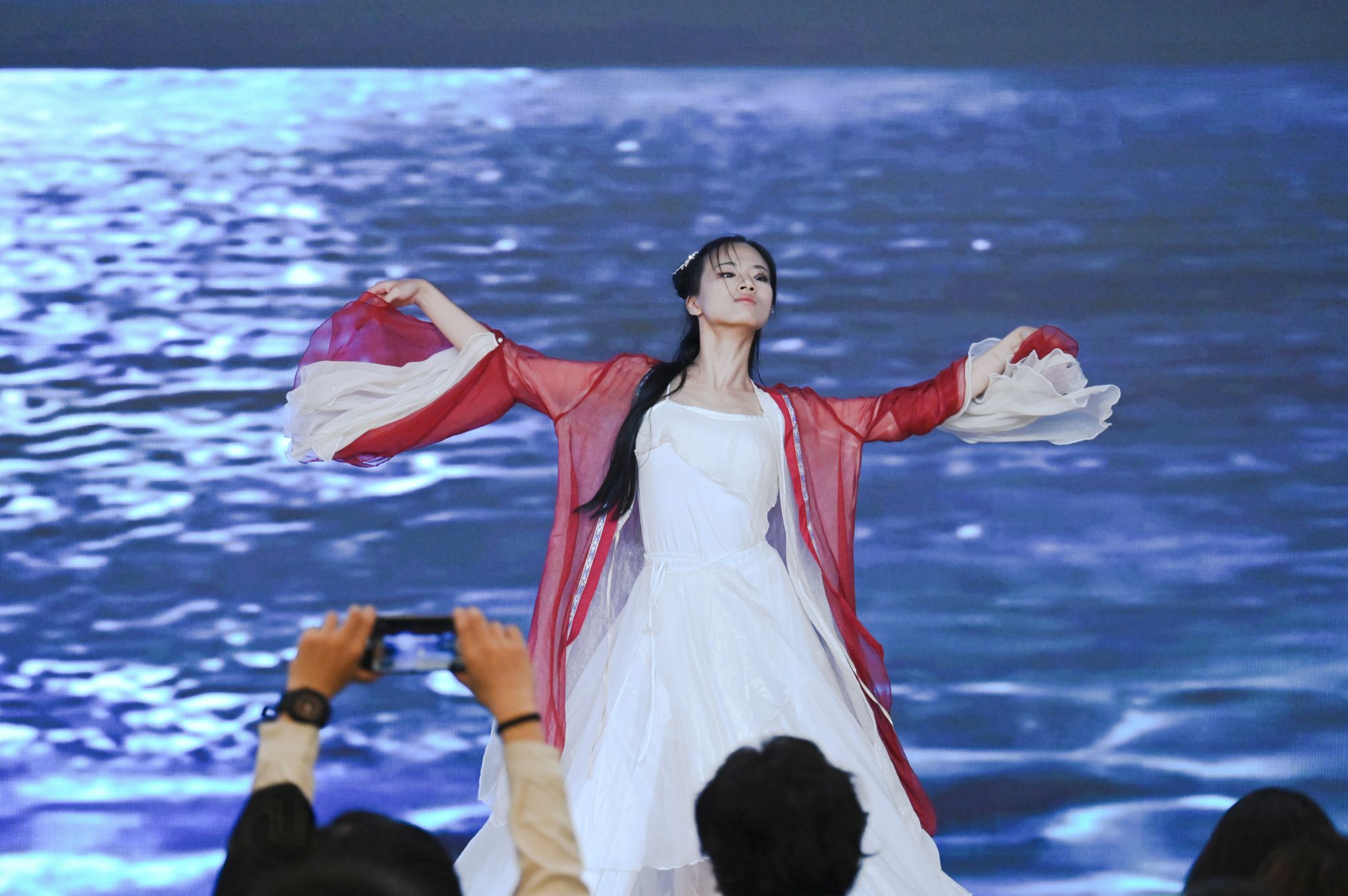 毕业歌会精彩纷呈,师生共聚一堂。活力四射的同学舞蹈《drama》引爆全场,动感节奏尽显青春不羁;独唱《阿楚姑娘》如清泉流淌,温柔抚慰着离别的愁绪;舞蹈《初见》以曼妙舞姿重现青涩相遇的美好瞬间,勾起无限回忆;弹唱《蝴蝶》旋律悠扬,才华与情感在琴弦间自然流淌;同学合唱《我们的明天》的歌声响彻大厅;穿插的抽奖环节惊喜连连;白松旭老师的《我爱你中国》将气氛推向高潮。