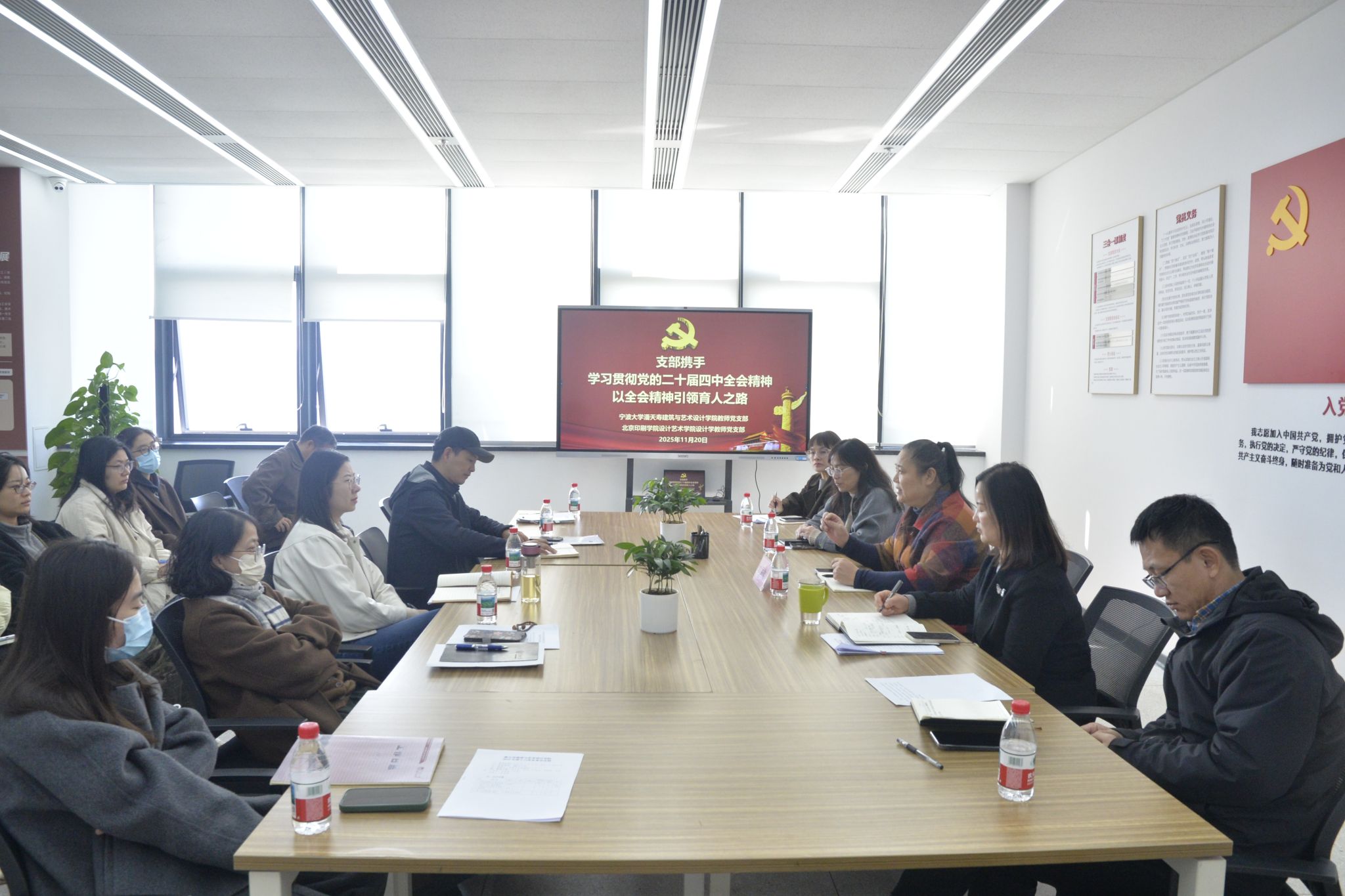 设计学教师党支部书记刘秀伟教授以“学习贯彻党的二十届四中全会精神以全会精神引领育人之路”为题作专题报告,她介绍了支部在学习贯彻党的二十届四中全会精神中的具体举措。她表示,要始终坚“党建引领学科发展,全会精神融入育人”的工作思路,将全会“一体推进教育科技人才发展”的战略部署与设计教育深度融合,推动党员教师将全会精神转化为教学科研的强大动力,并结合设计学科实践性强、跨界融合的特点,以战略思维谋划人才培养改革。