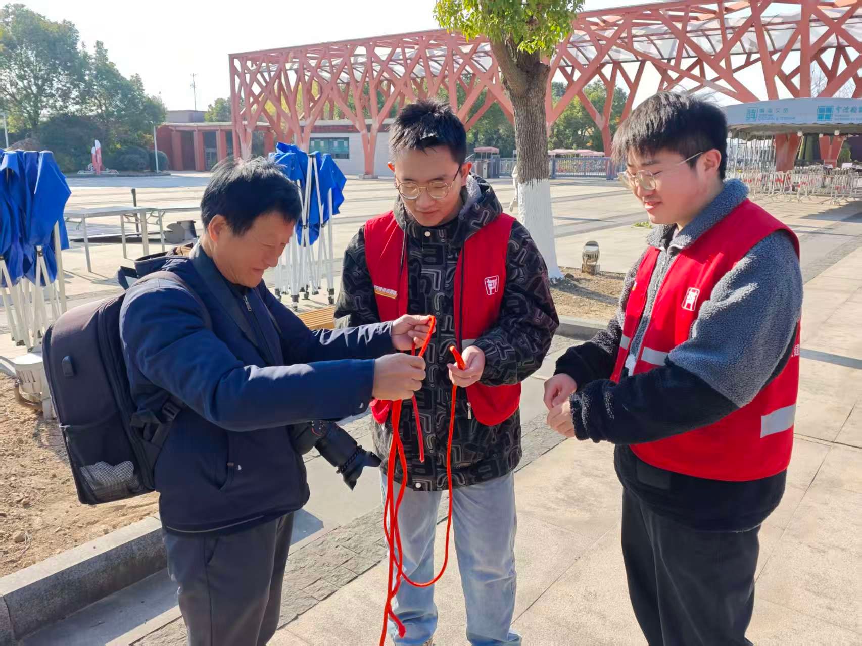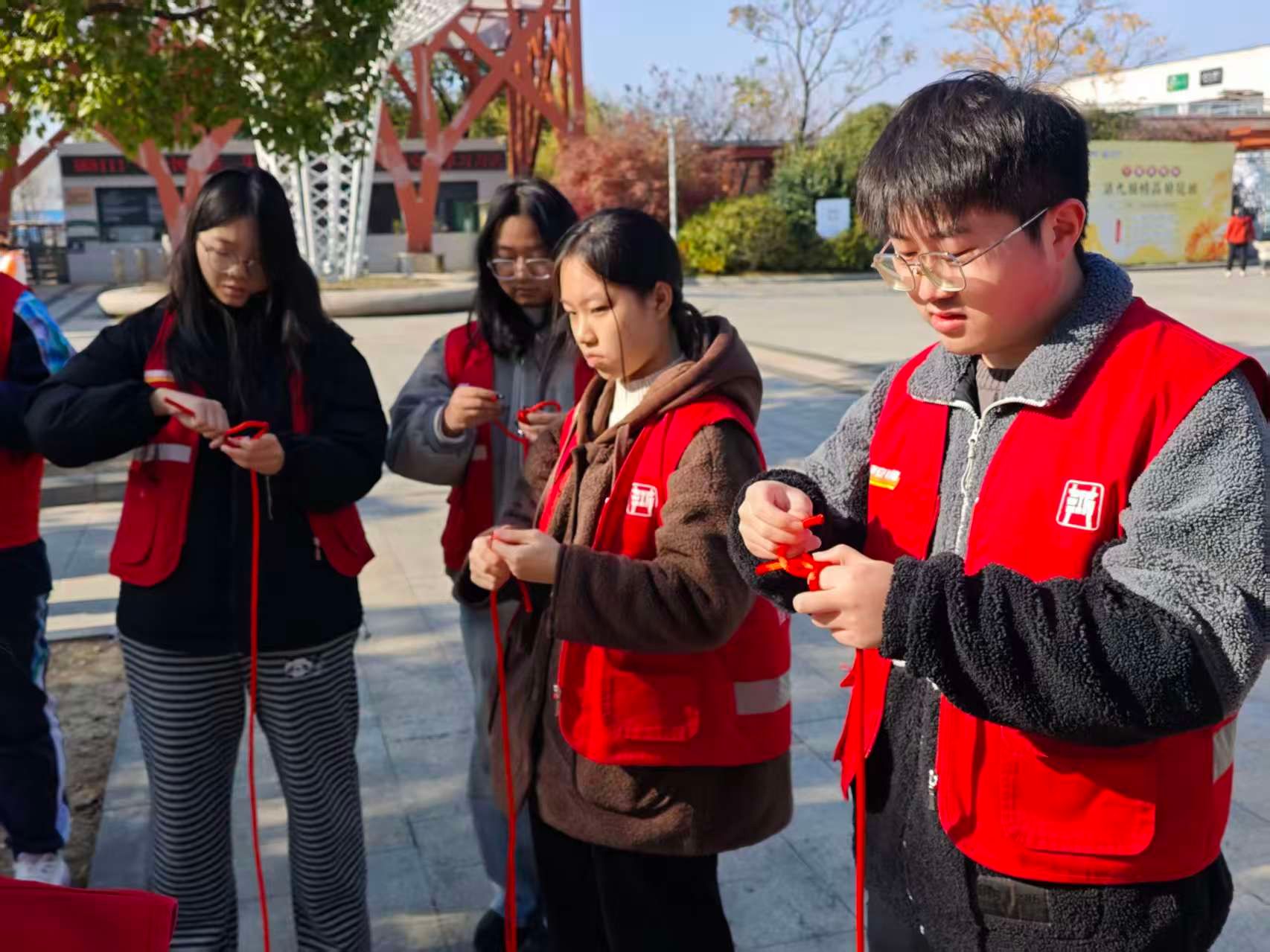 志愿者耐心指导市民编织寓意吉祥、团结的中国结,还传授在紧急情况下能迅速使用的逃生结、自救结等简易绳结打法。从“零基础”到逐渐熟练,参与者在动手过程中,提升了安全自救的意识和能力。