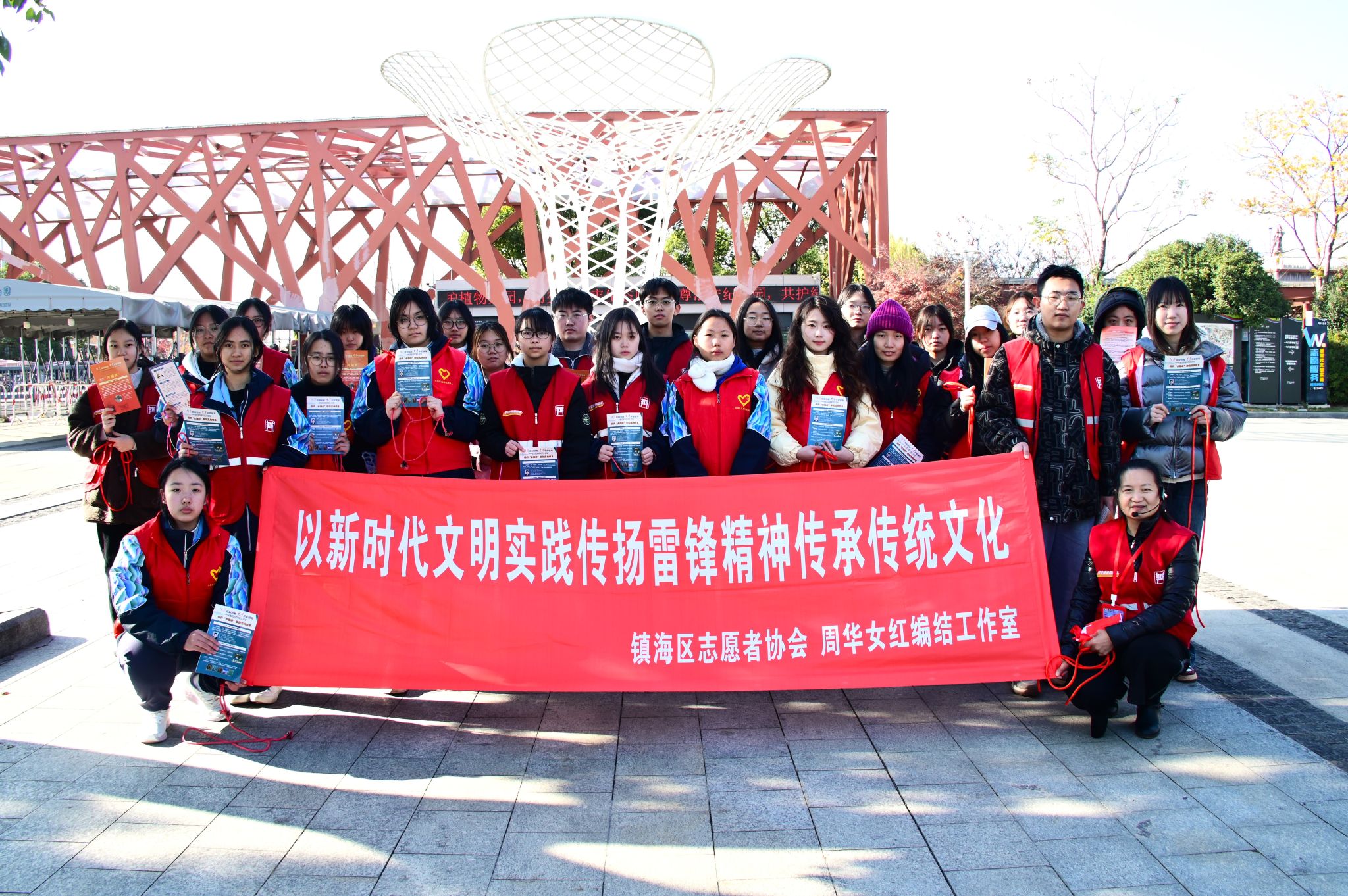 青年志愿者协会联合宁波市镇海区平安志愿服务协会,在宁波植物园开展“以新时代文明实践传扬雷锋精神传承传统文化”志愿服务活动,15名青年志愿者巧妙融合非遗技艺、实用安全技能与平安社区建设,带领市民在手工体验中感受传统魅力,增强安全意识。