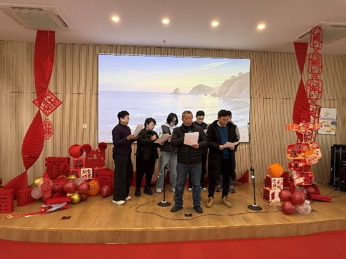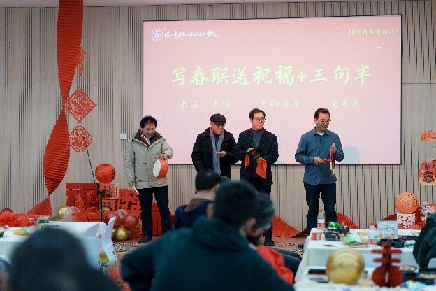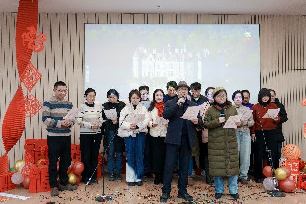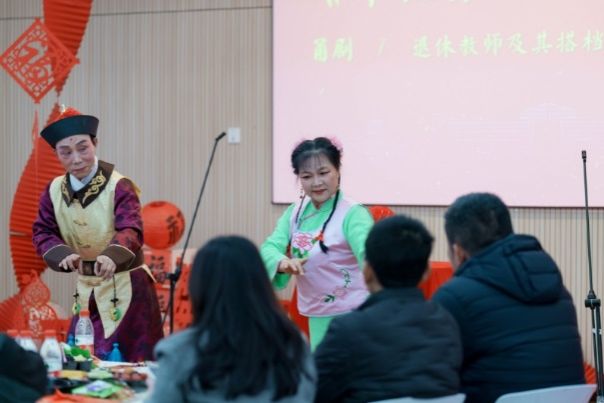 文艺表演环节精彩纷呈,各系部及行政部门带来了精心准备的节目。环境艺术设计系的合唱《外婆的澎湖湾》旋律悠扬,唤起共同的青春记忆;工业设计系杨一帆老师的武术表演刚劲有力,尽显中华传统文化魅力;行政部门的合唱《小美满》温馨动人,传递着对生活的热爱;美术系的书法《写春联送祝福》与三句半创意十足,笔墨间满是新春祝福,诙谐的表演引得现场笑声不断;退休教师梁秀宝与其搭档徐信耀带来的甬剧《半把剪刀选段 - 奉茶》韵味悠长,展现了传统艺术的独特魅力;最后,建筑系的合唱《相亲相爱一家人》温情唱响,唱出了利乐娱乐城