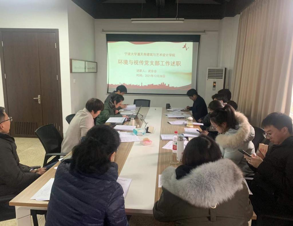 此次述职评议采用书面述职与现场述职相结合的方式,会前各党支部均提交了2021年支部工作总结。述职评议现场,行政教辅美术系教师党支部、环境与视传教师党支部、工业设计系教师党支部、建筑系教师党支部、学生第一党支部、学生第二党支部、学生第三党支部、研究生党支部等结合PPT分别从推进党史学习教育、学习强国的情况;对照“七个有力”标准抓建设的情况;推进党建“一支部一特色”“双创”建设情况;推进党建和业务“双融双促”情况;抓基层党建工作突出问题整改情况等方面汇报了支部本年度工作。