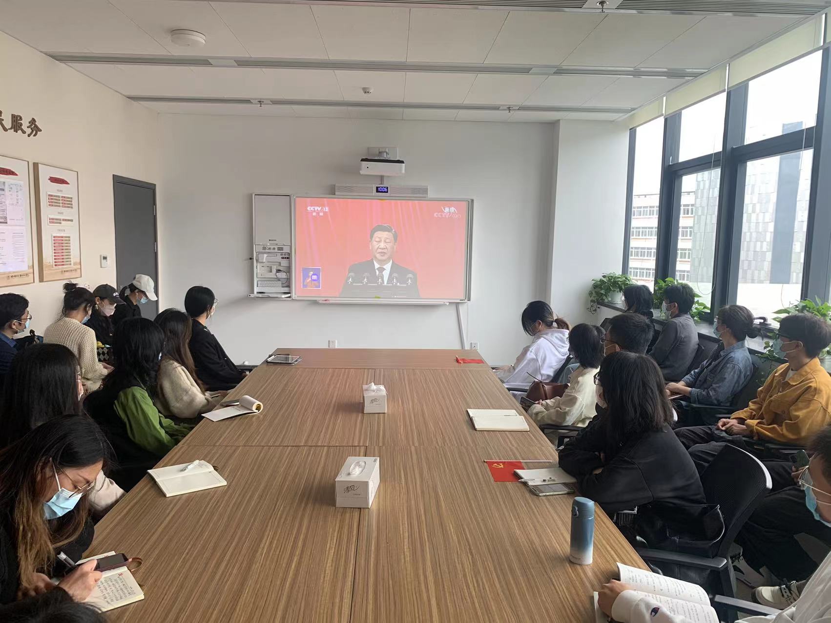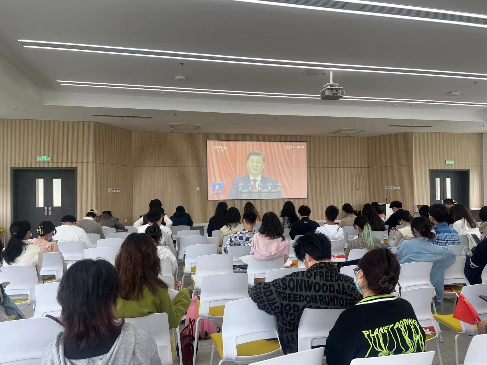 师生收听收看现场直播后一致表示,总书记的讲话报告激励人心、催人奋进,将牢记习总书记对新时代青年的殷切希望,坚定不移听党话、跟党走,全面响应并积极贯彻党的教育方针,传承并弘扬伟大建党精神,赓续红色血脉,立志成为有理想、敢担当、能吃苦、肯奋斗的新时代好青年,为实施科教兴国战略,全面建设社会主义现代化国家、全面推进中华民族伟大复兴而团结奋斗。