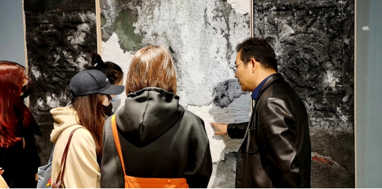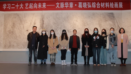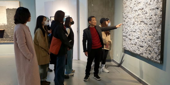的客座教授,长于综合材料绘画和中国画创作。葛教授基于传统文化的现当代转化,把传统材料和新型的综合绘画技法融合,创作出一系列与文脉相连的优秀作品,展出的作品去年曾在中国美术馆展出。观展和座谈过程中,葛教授和同学们分享了作品的创作心路历程,在材料运用方面回答了同学们的问题。