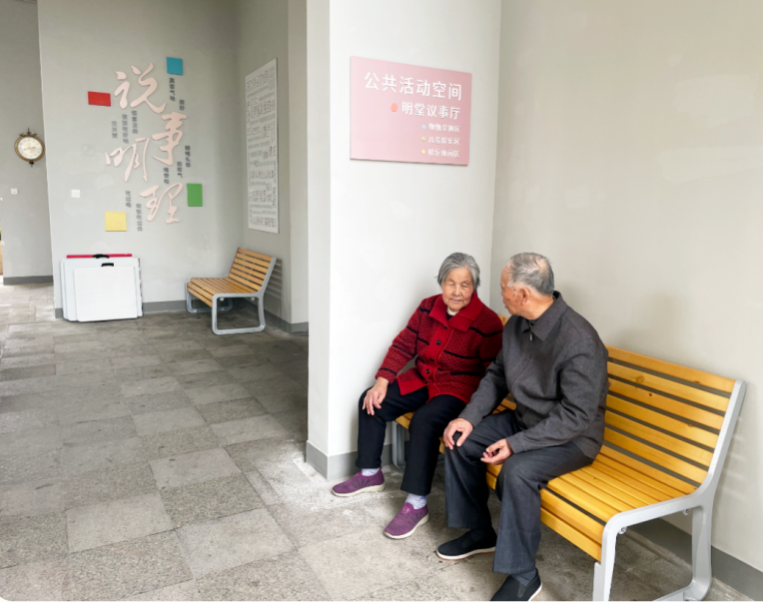 改造之后的架空层空间设计更为合理,划分为明堂议事厅、物物交换区、儿童娱乐区和娱乐休闲区。蕴含社区治理理念的“明堂议事”和“清正廉洁”文化墙,展示社区志愿者精彩瞬间的留念墙,促进邻里交往的旧物交换空间以及专为老人和儿童精心设计的休闲座椅等。