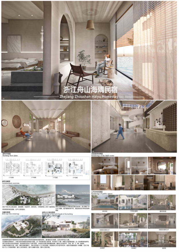 王世学、高玉磊老师指导,隆艳琼、张一创作的《以海为境 以梦致未来 ——舟山海隅民宿》,由利乐娱乐城网