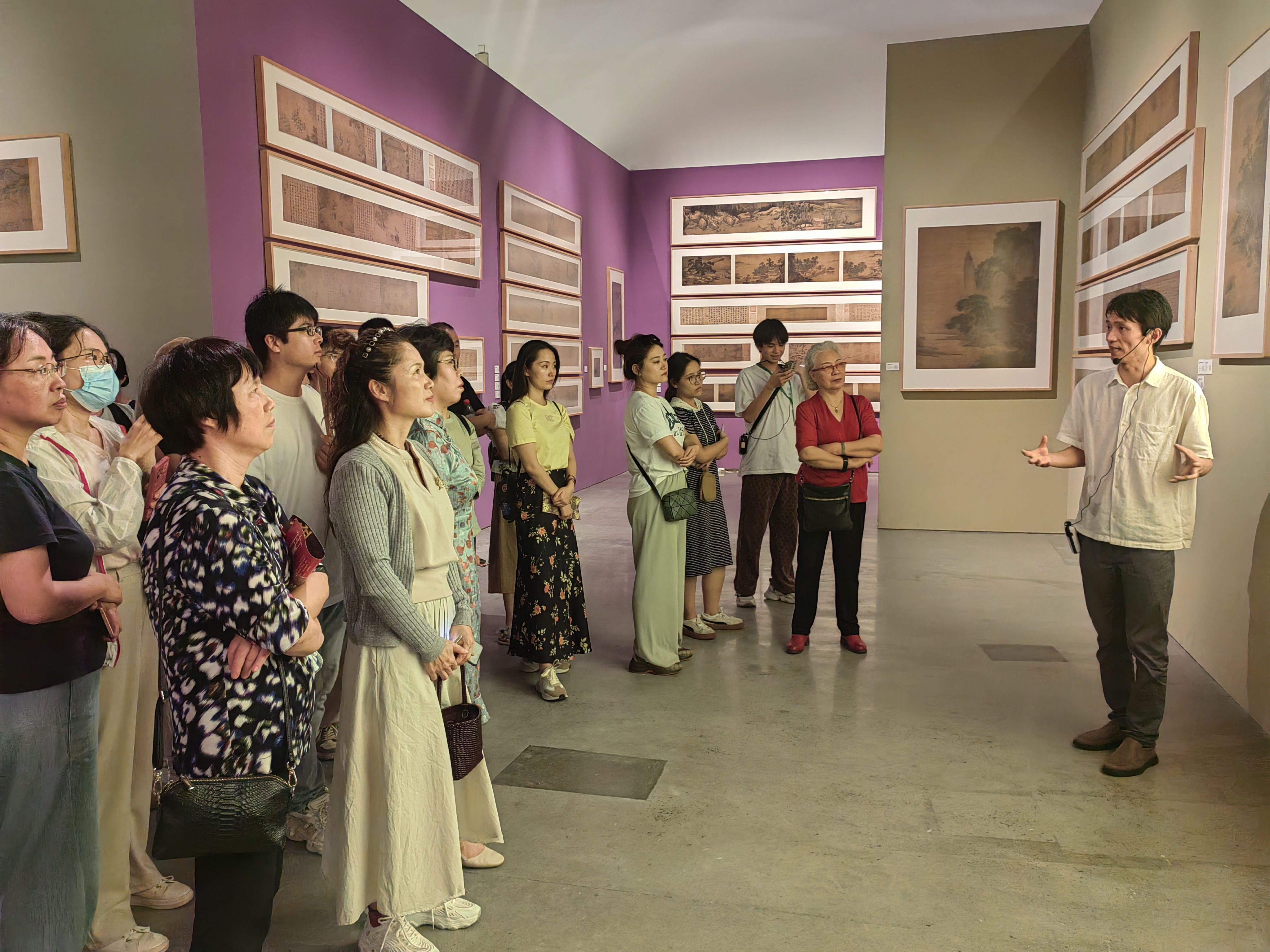 美术系党支部马善程副教授用两个半小时带大家深度参观了展览。从作品的创作背景、艺术特色等方面深入浅出地介绍了历代重要名家的代表性画作,现场为大家上了一堂生动精彩的行走的美育课堂。