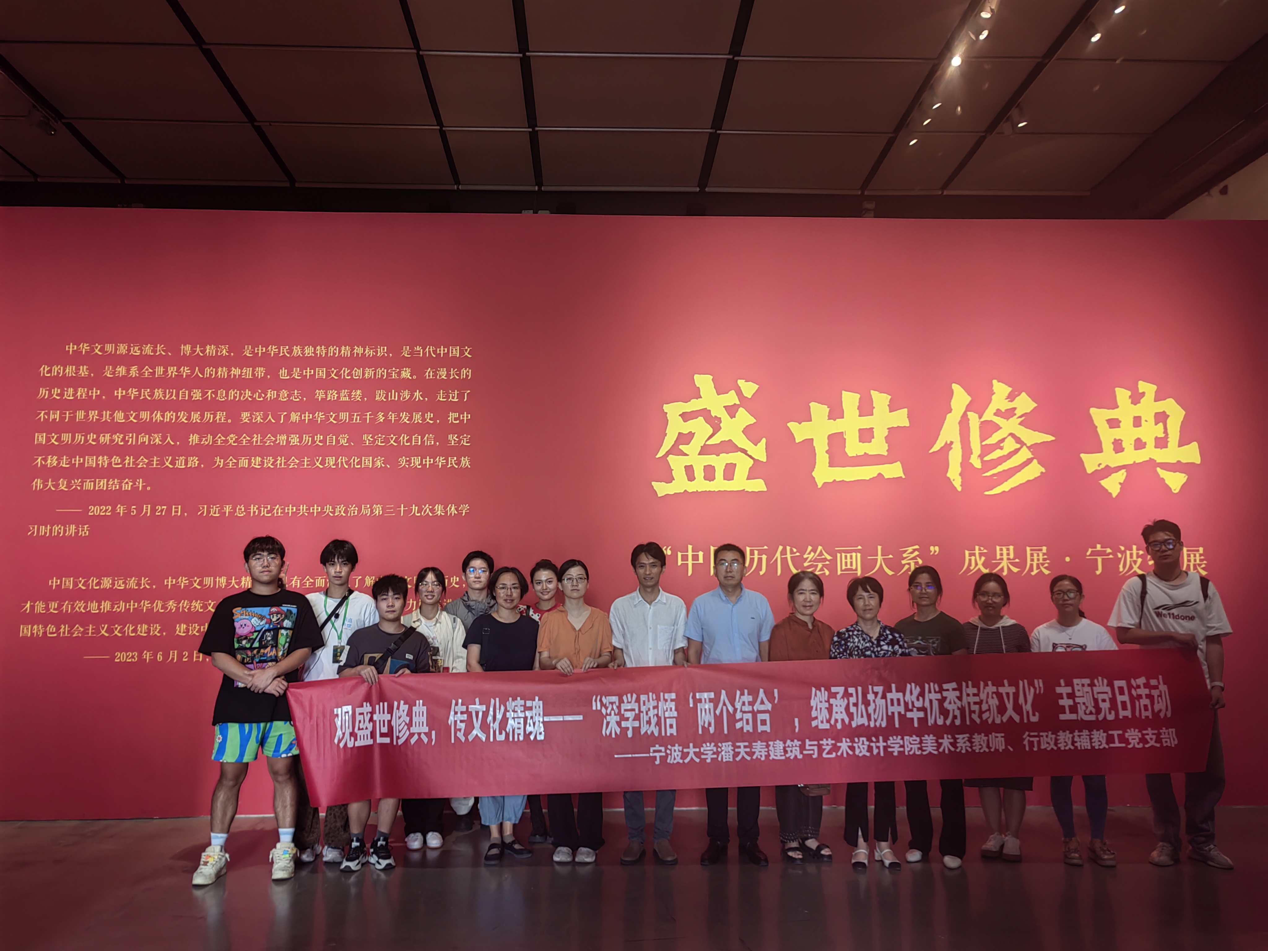 部分师生前往宁波美术馆参观“盛世修典——‘中国历代绘画大系’成果展·宁波特展”,开展观盛世修典,传文化精魂——“深学践悟‘两个结合’,继承弘扬中华优秀传统文化”主题党日活动。