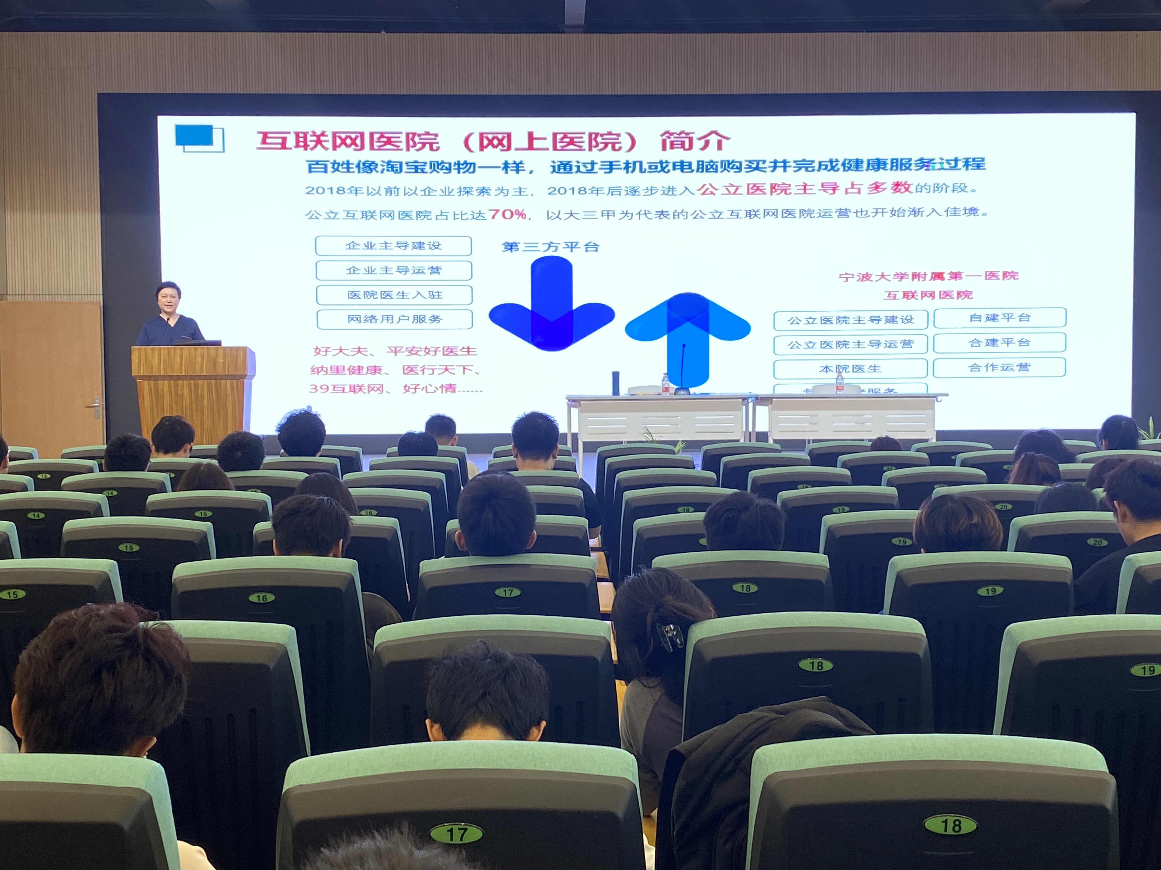 附属第一医院副院长许素玲首先围绕互联网医院,向同学们介绍了国内互联网医院发展现状、发展趋势以及利乐娱乐城网