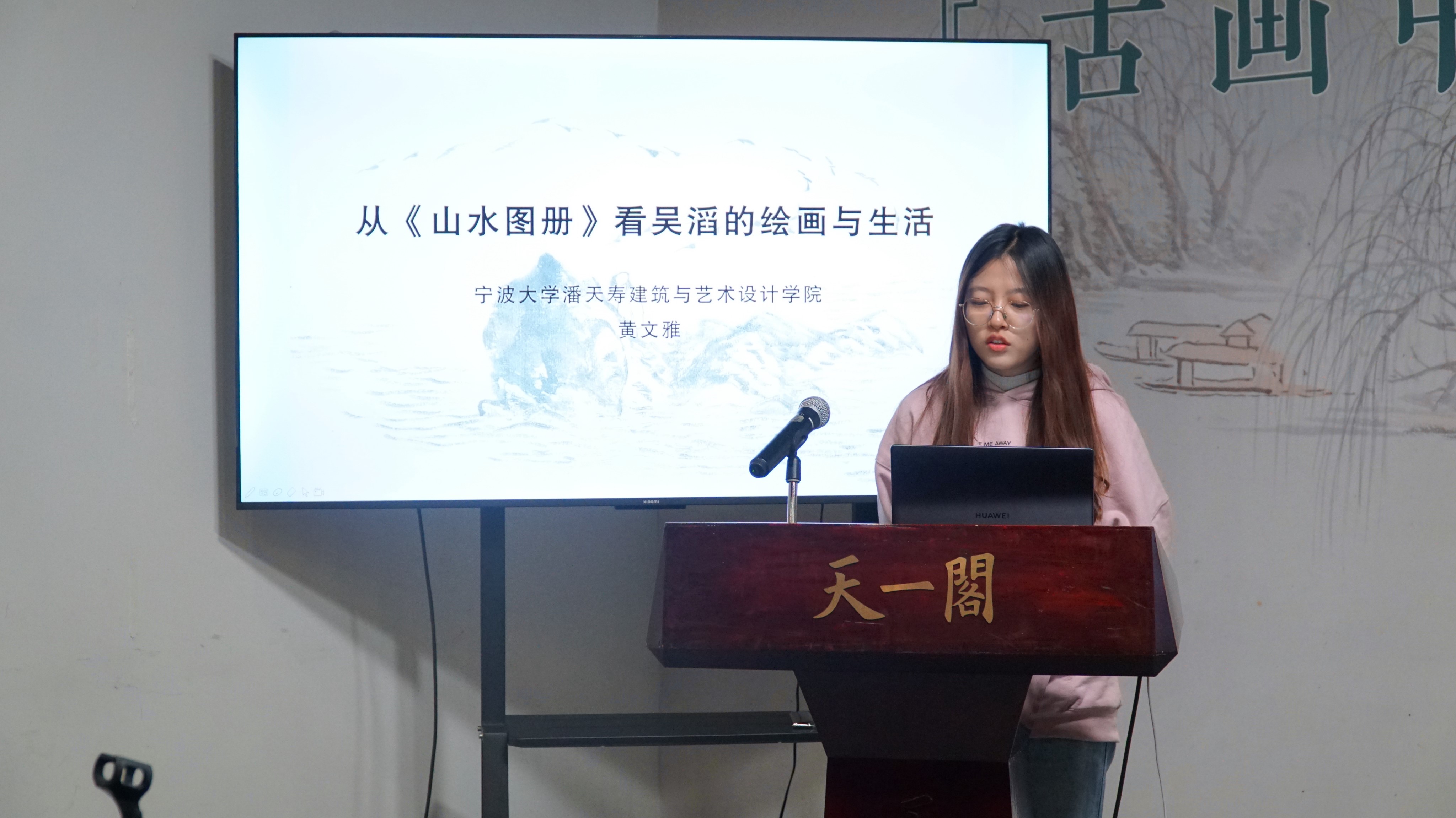 美术与书法方向四位研究生在此次研讨会中发言。分别是2022级研究生黄文雅、柳江莹、朱沛淇,2023级研究生翁嫣红。