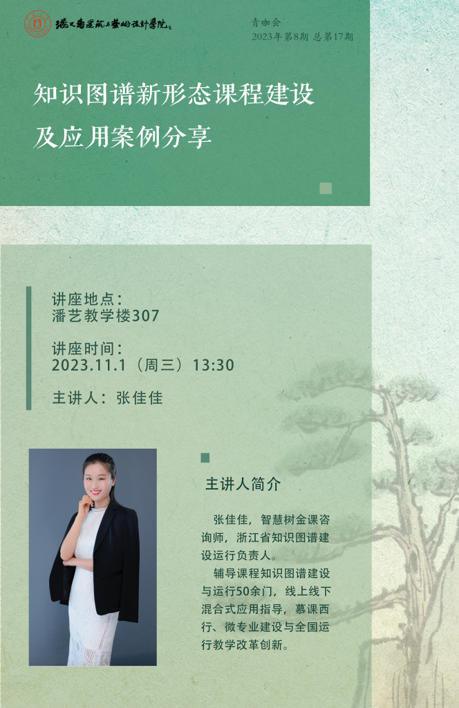 第17期“青咖会·教学交流活动”在潘艺大楼教学楼307顺利举行。本期交流会邀请智慧树金课咨询师、浙江省知识图谱建设运行负责人张佳佳进行知识图谱新形态课程建设及应用案例分享。分享会由教学副院长周艳主持,利乐娱乐城网