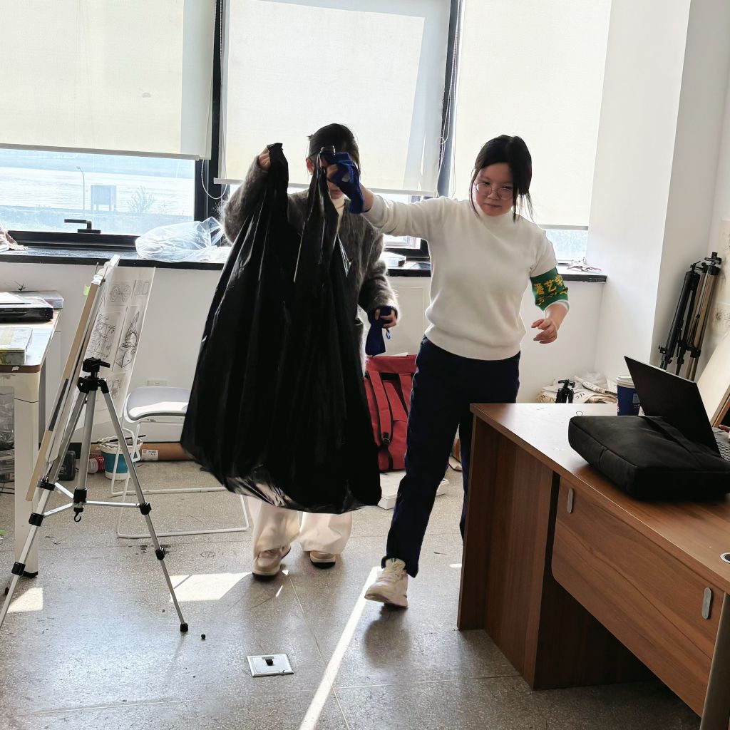 大楼内开展了“臻美潘艺”专教卫生打扫劳动实践活动,共30名潘艺2021级本科生参加。