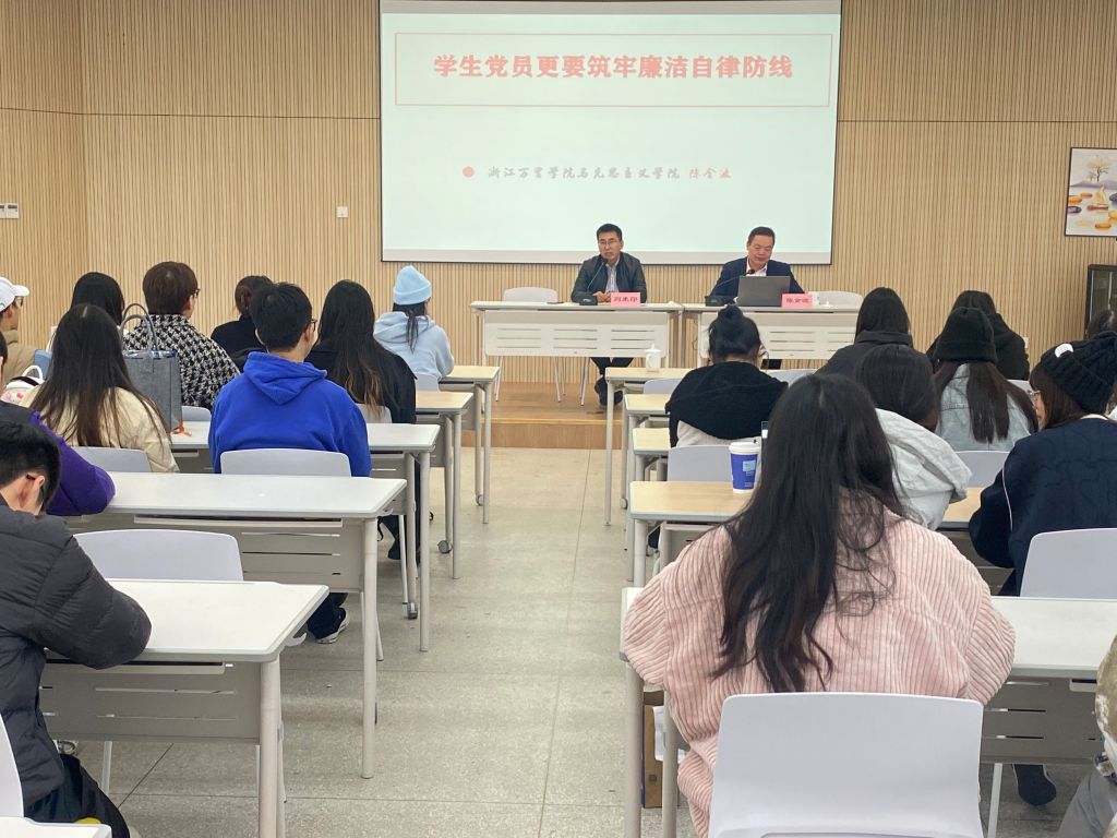 陈老师以《学生党员更要筑牢廉洁自律防线》为主题,向同学们分析了当前党和国家反腐败的任务和形势,讲述了学生党员加强廉洁教育的重要性和必要性,强调了学生党员如何才能成为新时代廉洁文化的传播者和践行者。