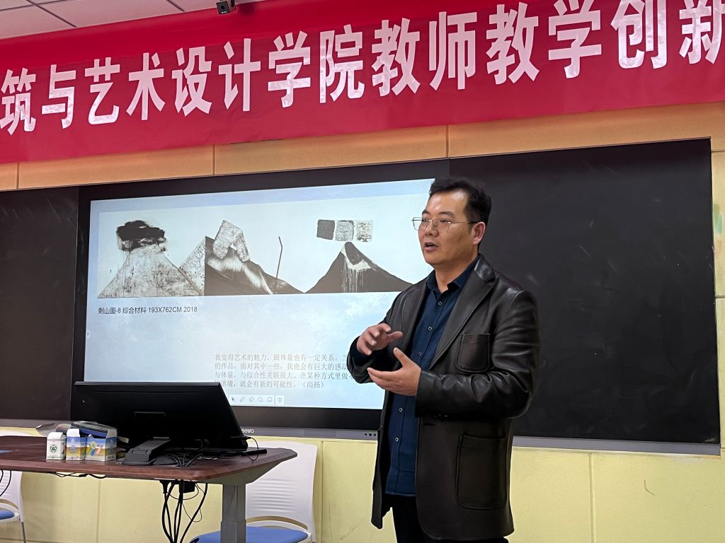 美术系陈晟老师的参赛课程为《综合材料绘画》,陈老师以美术学科核心素养为基本要求,融合多种优势展开综合绘画的教育教学改革,探索开放兼容的专业课程设计,引导学生树立大美术观念,增强对美术的理解能力、动手能力和绘画的综合意识及学术研究能力。