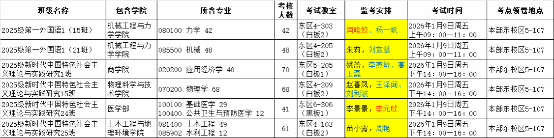 考试时间:2026年1月9日周五下午 14:00—16:00