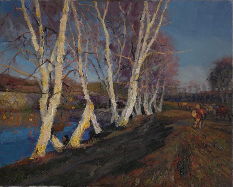2018年 《白桦秋色》-布面油画 60 x50cm 龙力游
