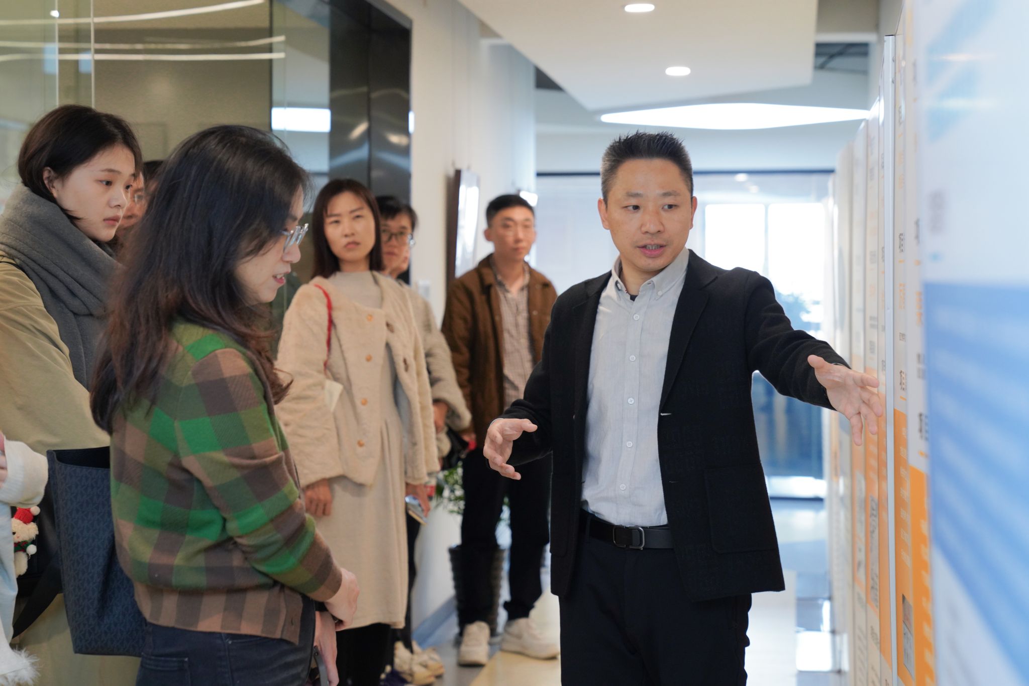 会上,杨超院长详细介绍了桐乡研究院建设以来的发展历程、研发方向和项目成果,并向与会师生展示了部分项目设计成果,突出体现将传统文化融合当代设计后在实际商业场景中的有效应用,充分展现了校企合作的优秀成果和发展潜力。